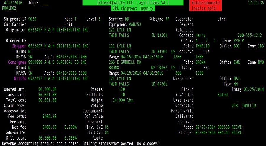 AgiliTrans and LTL/400 share common customer, freight bill, and system configuration databases. While revenue accounting processes are shared, operational processes--quoting, order entry, rating, and dispatch--are unique and designed to the specific requirements of 3PL operations.